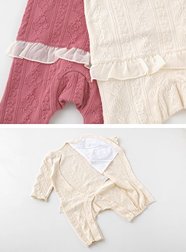 - お 部 屋 着 も 可 愛 く 揃 え た い ネ ! ニット調のジャガード生地がオシャレかわいい お部屋着やパジャマにぴったりの長袖前開きカバーオールです