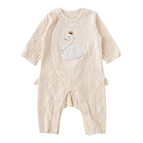 ( チャックル ) chuckle * スウィートガール * スワン 長袖 前開き カバーオール アイボリー 80cm P2947-80-11