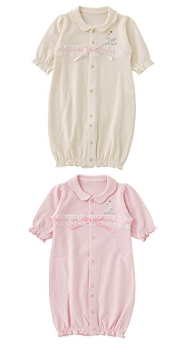 - 女 の 子 の 可 愛 さ 引 き 立 つ 新 生 児 ツ ー ウ ェ イ オ ー ル 胸元にあしらったスワンの刺繍やリボンがとっても可愛い 女の子ベビーの可愛さが引き立つ新生児ツーウェイオール