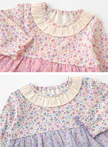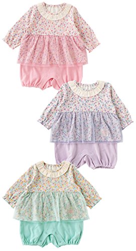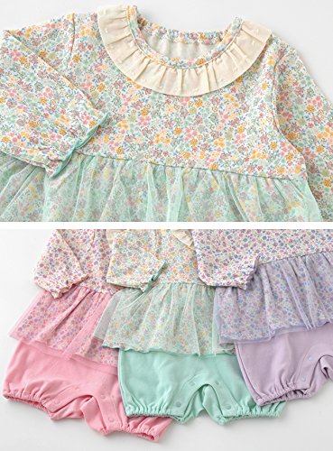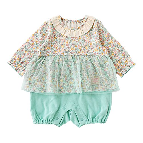 ( チャックル ) chuckle * スウィートガール * 重ね着風 小花柄 長袖 カバーオール グリーン 70cm P2946-70-70