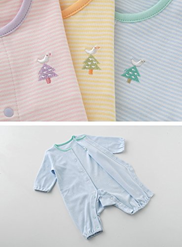 - ベビーらしいパステルカラーでママの心も和みます♪ 胸元には小鳥さんとツリーの刺繍をあしらいました 女の子らしいピンク、おしゃれな水色、優しいクリームの3色展開です