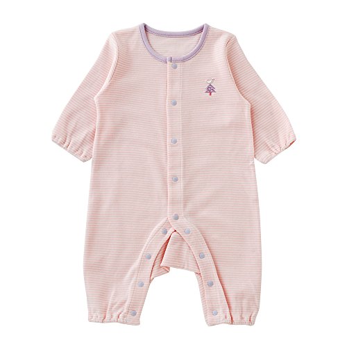 ( チャックル ) chuckle パステル ボーダー 長袖 前開き カバーオール ピンク 70cm P2921-70-20