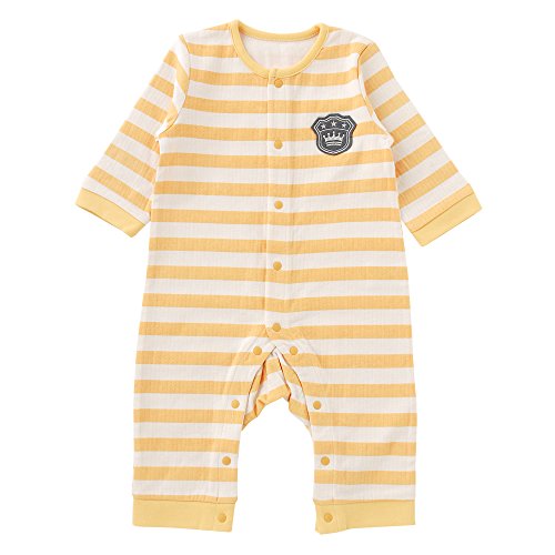 ( チャックル ) chuckle ボーダー 長袖 前開き カバーオール イエロー 80cm P2926-80-41