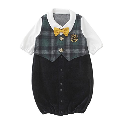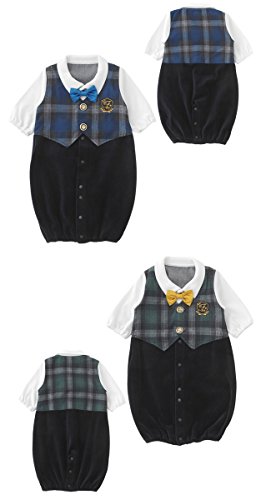 - 男 の 子 ベ ビ ー の フ ォ ー マ ル 新 生 児 ツ ー ウ ェ イ オ ー ル 蝶ネクタイがとってもキュートな見せかけベストの フォーマル新生児ツーウェイオールです