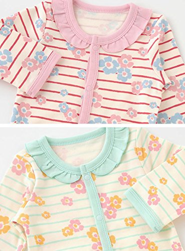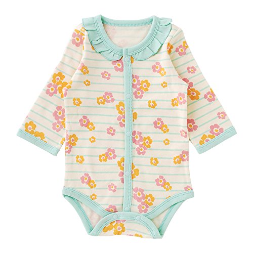 ( チャックル ) chuckle 花柄 ボーダー 長袖 前開き ロンパース グリーン 70cm P2330-70-70