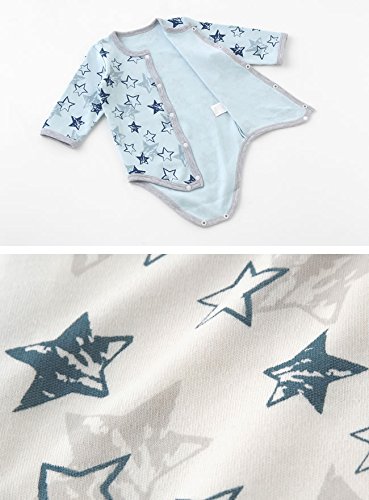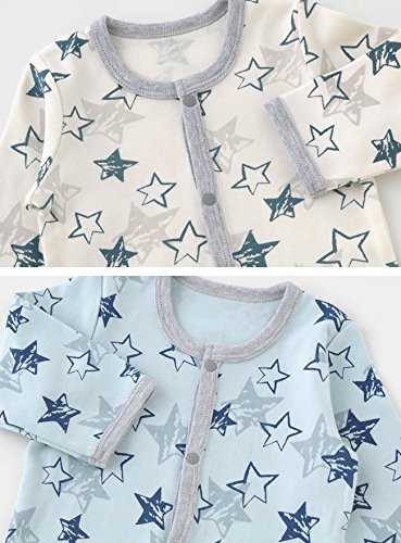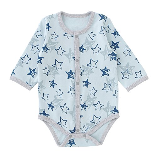 ( チャックル ) chuckle 手描き 星柄 長袖 前開き ロンパース サックス 70cm P2320-70-30