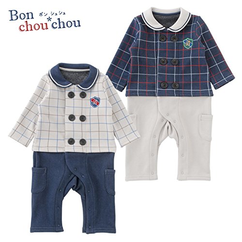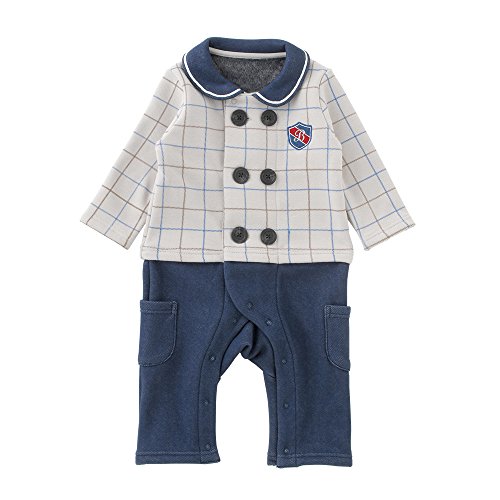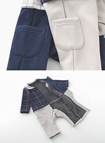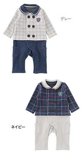 (チャックル) chuckle * ボンシュシュ * チェック柄 セパレート風 長袖 前開き カバーオール グレー 70cm P2953-70-00