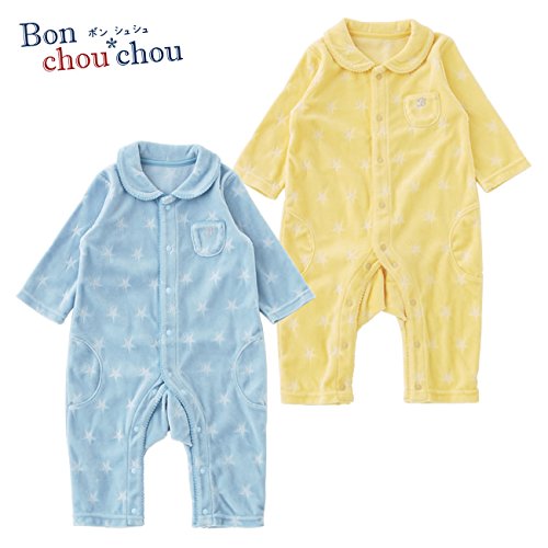 (チャックル) chuckle * ボンシュシュ * パステル ベロア 星型 長袖 前開き カバーオール イエロー 80cm P2954-80-41