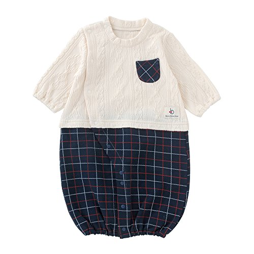 (チャックル) chuckle * ボンシュシュ * 切替え チェック柄 新生児 ツーウェイオール アイボリー 50-60cm P5276-00-11