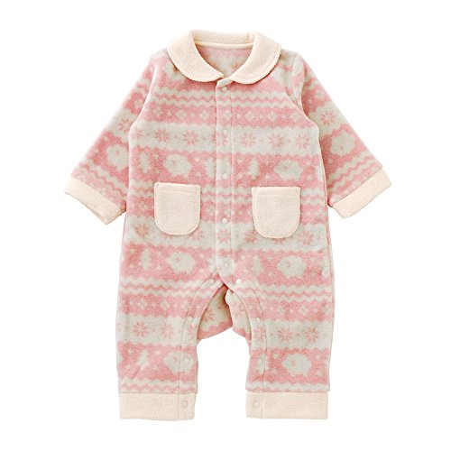 (チャックル) chuckle 北欧風 プリント フリース 長袖 前開き カバーオール ピンク 80cm P2924-80-20