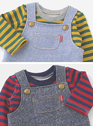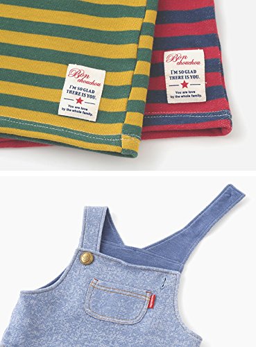 - ■素材■サロペット:デニム調裏毛 表地:綿100%、裏地:綿97%ポリウレタン3% Tシャツ 本体:先染めボーダー裏毛 綿100% リブ:綿95%ポリウレタン5%