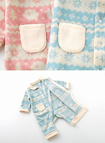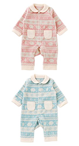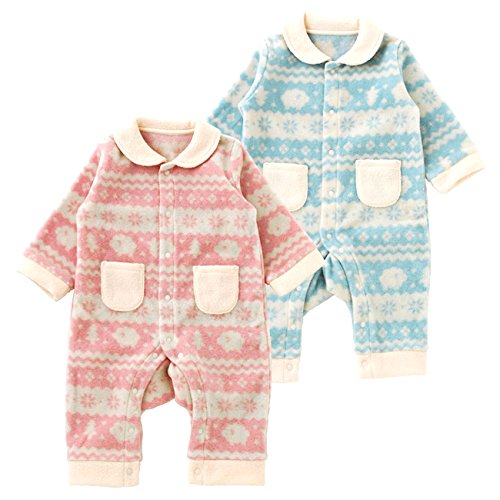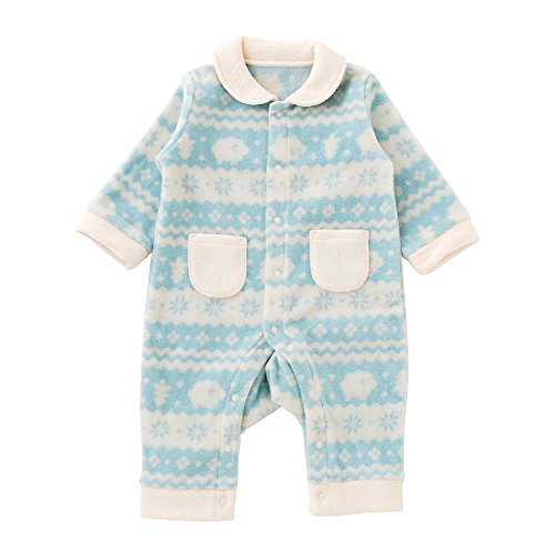 (チャックル) chuckle 北欧風 プリント フリース 長袖 前開き カバーオール サックス 70cm P2924-70-30