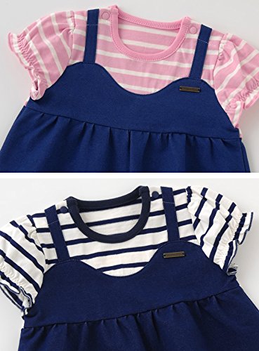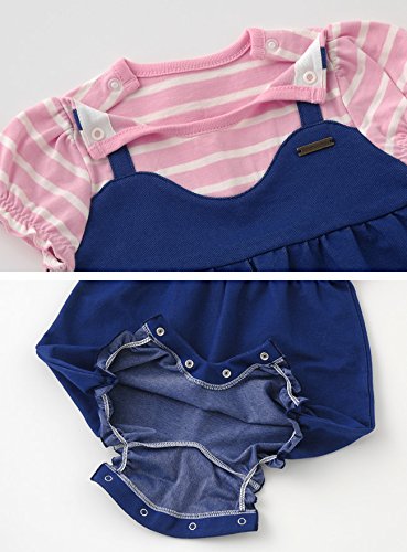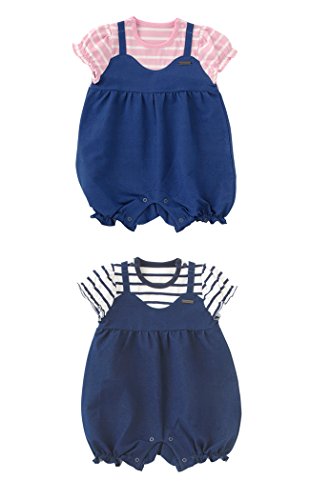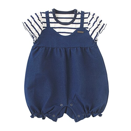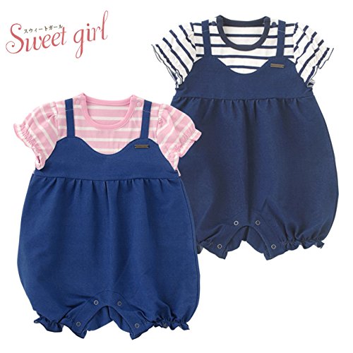 - お出かけが楽しくなる!重ね着風オール まるでサロペットとTシャツを着ているように見える、 重ね着風の半袖ショート丈カバーオール。 デニムとボーダー生地の組み合わせが夏らしく、 元気な女の子ベビーにぴったり! これ1着でお出かけスタイルが完成するから、 コーディネートにあれこれ悩まずすぐお出かけ出来ます!