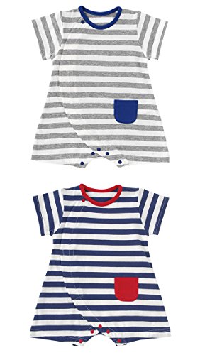 - ■素材■ 夏にぴったりの爽やかな天竺を使用しました。 薄手素材なのでとっても涼しげ! ■仕様■ 新米ママにも嬉しいお着替え簡単な前開きタイプ。 股部分にもスナップが付いているのでおむつ替えもラクラク!