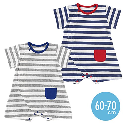 (チャックルベビー) chuckle BABY ボーダー 半袖プレオール グレー 60-70cm P2587-00-00