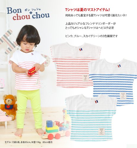 (チャックル) chuckle *ボンシュシュ*フレンチマリンボーダーTシャツ グリーン 95cm P3302-95-70