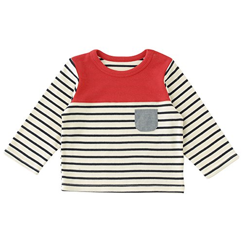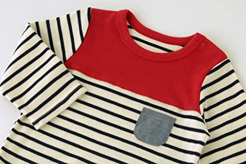 マリンボーダーがキュートな着回し力バツグンの長袖Tシャツ☆ボトムスとの相性もばっちりでデイリー着や保育園ウェアとして大活躍!春や秋向きの程よい厚みでインナーや羽織りを合わせればオールシーズン着せることが出来ます。■素材:スムース/ダンガリー 綿100%