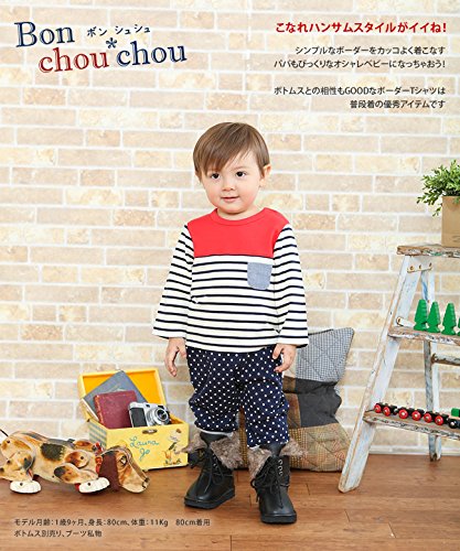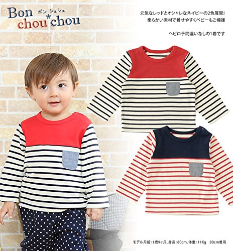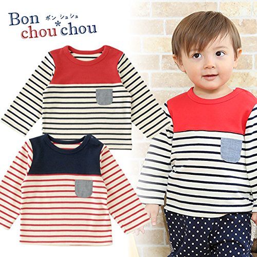 (チャックル) chuckle *ボンシュシュ*ボーダー長袖肩開きTシャツ ブルー 95cm P3311-95-31