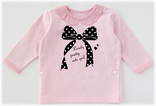 ニシキ リボン柄長袖Tシャツ&ドットズボンセット P3152 95cm ピンク(ズボン・黒)