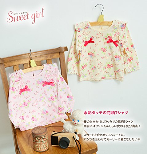 水彩タッチのお花柄をプリントした女の子気分満点の長袖Tシャツです。フリルやリボンをあしらって女の子らしく仕上げました。普段のお出かけはもちろん、特別な日のお出かけにもぴったりです ■素材:スムース 綿100%