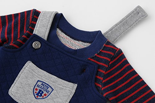 (チャックル) chuckle *ボンシュシュ*ボーダーTシャツ&サロペットセット【16AW】 ブルー 70cm P3116-70-31