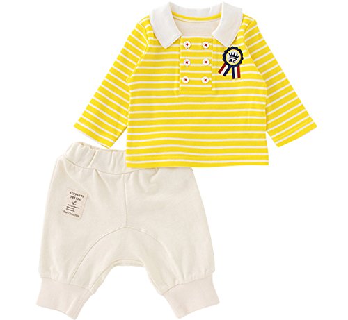 ( チャックル ) chuckle * ボンシュシュ * ボーダー 長袖シャツ & パンツセット イエロー 80cm P3114-80