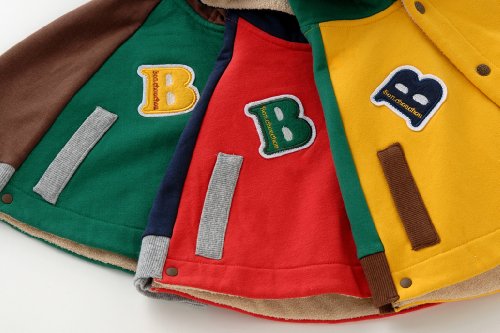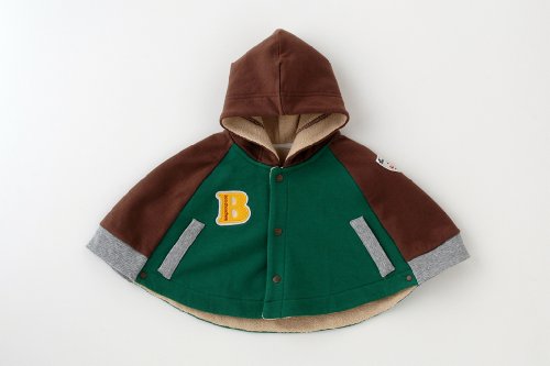 元気カラーがキュートなスタジャン風のベビーマント☆マントは秋冬ベビーの必須アイテム★フード付きで頭までぬくぬく暖か、冬のお出かけに大活躍間違えなし♪ ■素材■表地・リブ生地: 綿95%、ポリウレタン5% 裏地:ポリエステル100%