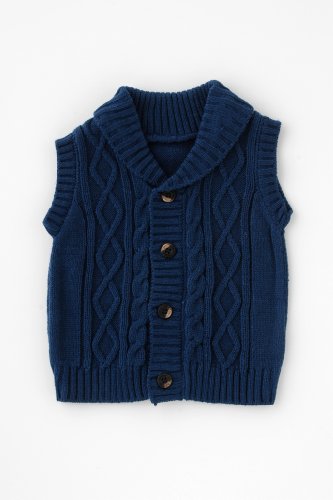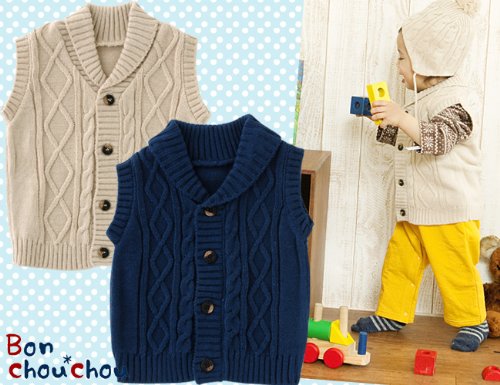 (チャックル) chuckle *ボンシュシュ*前開きボタン付きニットベスト ネイビー 70cm P2273-70-31