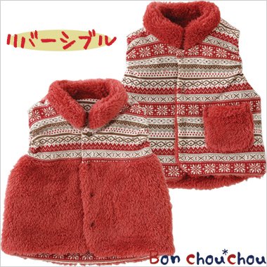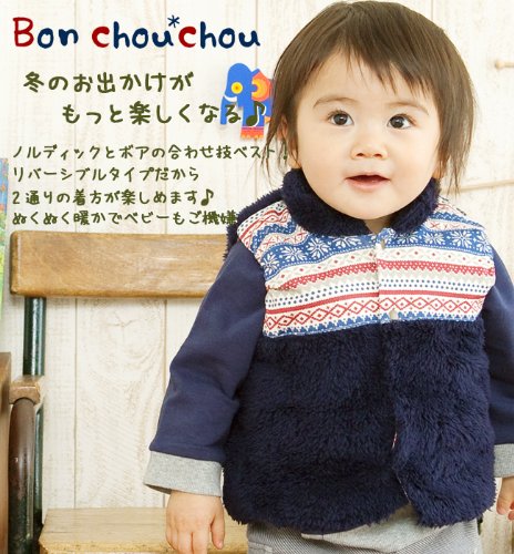 寒い冬にぴったりの暖かボアを使用したノルディック柄がオシャレなベストです。リバーシブルタイプで2通りのコーデが楽しめるからデイリー使いで大活躍間違いなし!お洋服との相性も良いカラーでサッと羽織るだけで普段着をもっと可愛く見せてくれます ■素材■ボア生地:ポリエステル100%プリント生地:綿100%