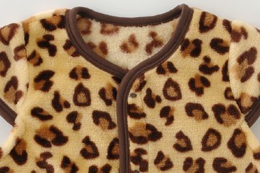 暖かソフトボアのヒョウ柄がキュートなベビーもにっこりの袖付きベスト! お部屋での体温調節やお昼寝やねんね時に大活躍間違いなし☆■素材■本体:ソフトボア ポリエステル100% パイピング:綿100%