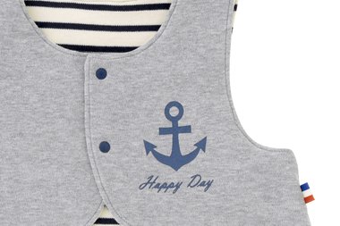 生まれたてBABYの必需品☆ 赤ちゃんの体は体温調節がまだ上手に出来ません。朝晩の冷え込みや寒い日の日中にお出かけなどぬくぬくベストを着せて体温調節しましょう。オシャレかわいいマリン柄で出産お祝いやお誕生日プレゼントにもぴったり!■素材■表地・裏地:スムース 綿100%中綿:ポリエステル100%
