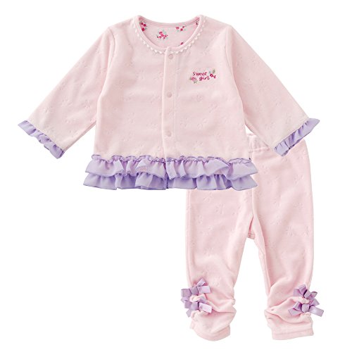 (チャックル) chuckle *スウィートガール*リボン柄ベロアトップス&ズボンセット ピンク 60-70cm P3104-70-20