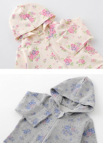 - か わ い い 花 柄 に マ マ も ベ ビ ー も ご 機 嫌 !女の子気分満点の可愛い花柄スウェット素材を使用したお出かけにぴったりのパーカー女の子らしい可愛さ溢れるアイボリーにピンクの花柄、ちょっぴり大人でコーディネートしやすいグレーにブルーの花柄の2色展開フードの裏地にも花柄生地を使用しました出産お祝いのプレゼントにもおススメです!