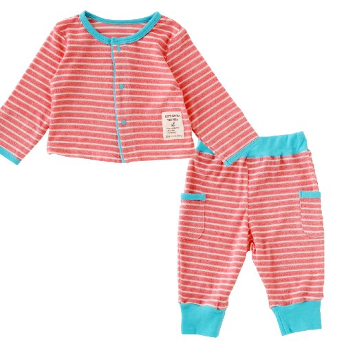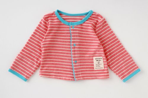 始めてのセパレートデビュー☆ベビーもコーデを楽しみたい!首のすわらないベビーにも着せやすい前開きシャツとシルエットが可愛いパンツのセットです。デイリー着にぴったりのパイル素材でお部屋着やお出かけ着にGOOD☆単品使いをしてもOKな可愛いアイテムです。■素材:先染めボーダーパイル 綿100%