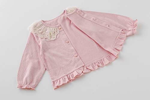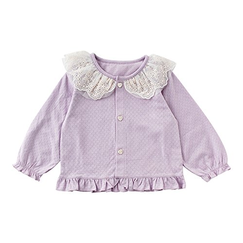 レース襟がとってもキュートな春から初夏向きの薄手カーディガンです。女の子ベビーの愛らしさが引き立つシンプル可愛いデザインで特別なお出かけにもGOOD朝晩の冷え込みやお出かけ先での体温調節に便利なカーディガンはマストバイ!■素材■本体:針抜き天竺 綿100%レース:生地 ナイロン100%、刺繍糸 綿100%チュール:ポリエステル100%