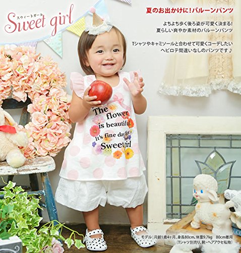 - ふ ん わ り シ ル エ ッ ト に 一 目 惚 れ ♪女の子ベビーの普段着にぴったりのバルーンパンツ爽やかなレース素材にフリルを付けて可愛らしく仕上げましたTシャツやキャミソール、チュニックと合わせて可愛い夏コーデを楽しみたいネ♪夏のお出かけ、旅行や帰省に着せたいアイテムです