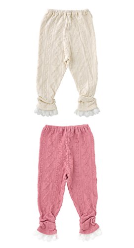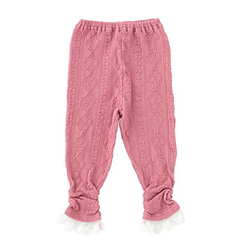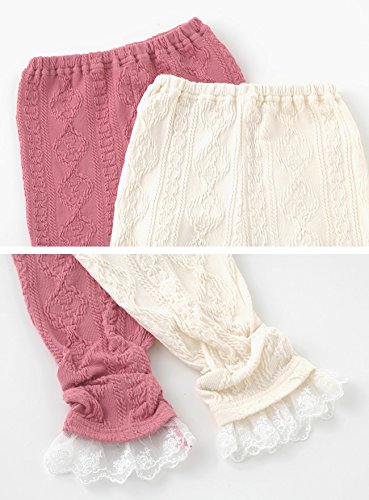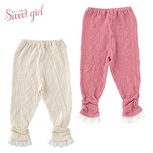 - 女 の 子 ベ ビ ー を 可 愛 く 包 む ニ ッ ト 風 レ ギ ン ス 秋冬にぴったりのニット模様が可愛いレース付きレギンス おむつもゆったり包む伸縮性のある素材で ベビーの可愛さを引き立たせてくれます