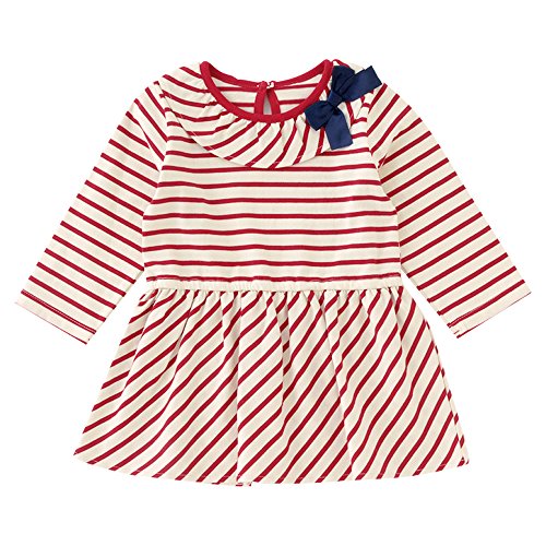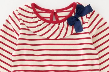 おしゃれなボーダー切り替えのキュートな長袖ワンピースです。元気ベビーにぴったりのボーダーで普段のお出かけに大活躍です!■素材■本体:先染めボーダー天竺 綿100%リボン:ポリエステル100%