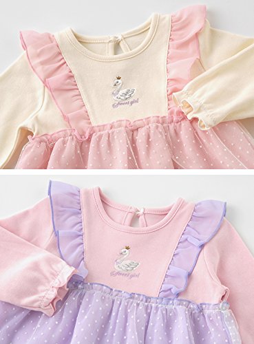 ( チャックル ) chuckle * スウィートガール * チュール スワン 長袖 ワンピース ピンク 95cm P2208-95-20