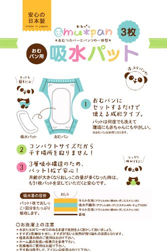 ●【商品説明】●「おむパン用布パットG1865 P 3枚入」は、おむパン専用の布パット(布おむつ用ライナー)です。●4層吸水構造でしっかり吸水。●何度でも洗えて使用できます。●おむパンの舟形ポケットに入れてお使いください。●3枚入り。●【使用上の注意】●お洗濯上の注意●水または30-40度のぬるま湯で、洗剤をよく溶かして洗いましょう。●塩素系漂白剤の使用は避けてください。●ネームの裏の取り扱い表示を参考にしてください。●すすぎと乾燥は充分に。●すすぎが悪いと洗剤が残り、モレの原因となります。●干す時は陰干しで、アイロンの使用は避けてください。●乾燥機の使用は避けてください。●【材質】●綿●【原産国】●日本●まとめ買いの場合、システムの仕様で個数分の送料が加算される場合がありますが、送料は1配送先につき1個分の金額となります。●システムの仕様で配達日を指定出来る場合がありますが、配達日の指定は出来ませんのでご了承ください。尚、時間指定は出来ます。●ご注文確定後のキャンセルならびに、お届けしました商品のお客様都合による「返品 交換」は行っておりませ...