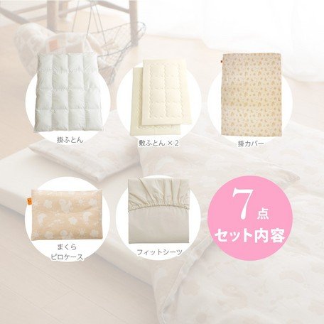 - ・掛カバー 102×128cm・フィットシーツ 70×120cm・ピロケース 25×35cm