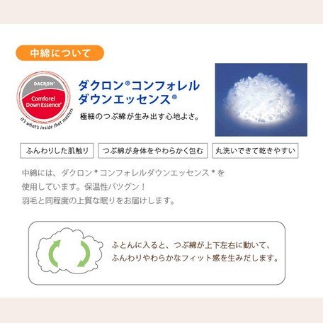また、中綿にはダクロン コンフォレル ダウンエッセンスを使用したことで、羽毛と同程度の上質な眠りを実現しました。
