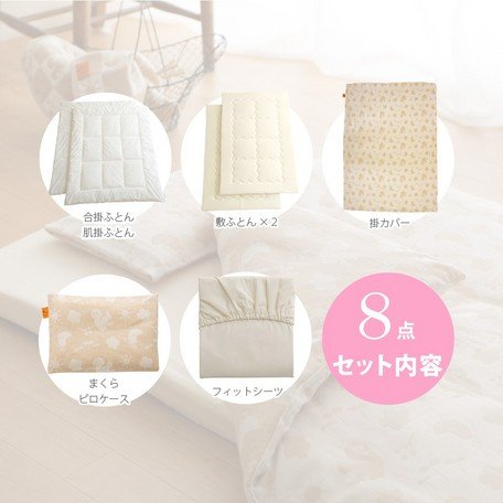 - ・掛カバー 102×128cm・フィットシーツ 70×120cm・ピロケース 25×35cm