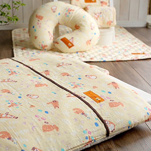 授乳時やお座りの補助などいろいろ使える授乳クッションです。 カバーが取り外せて洗えますので、いつも清潔にたもてます。 カバーの生地には2重ガーゼを使用しておりますので、風合いもよく吸水、速乾性に優れておりますので、赤ちゃんにもお母さんにも優しいです。 カバーが取り外せて洗えますので、いつも清潔にたもてます。 ポップでかわいいデザインはお部屋のインテリアとしてもオススメです! ---------------------------------------------- 「森の仲間たちから赤ちゃんへのささやかなプレゼント!」 赤ちゃんのはじめてのともだち、森のなかまたちが繰り広げる森でのゆかいでやさしい暮らしを描いたシリーズ。 どんなコがいるのかな? 何をしているのかな? 赤ちゃんも、パパ、ママも一緒に、おだやかな気持ちで過ごしてほしい・・・ そんな想いを込めたデザインです。