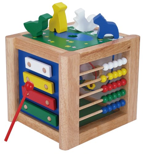 ビーズ遊び・パズル遊び・木琴・時計・計算・どうぶつブロックを使ったごっこ遊び。6つの遊びが楽しめます。