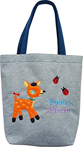 ●アップリケと刺繍が可愛いポエティックのショルダートートです。 ●ベーシックなスウェット生地を使用。内側の生地もラブリーです。 ●持ち手は紺色でおしゃれ感UP! ●たっぷり入る内側は、A4サイズもOK。ポケット付き。 ●マグネットホックがついています。 ●キャラクター:ピエール(バンビ)