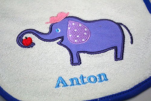 - キュートなアップリケと刺繍の凝ったつくりのスタイ