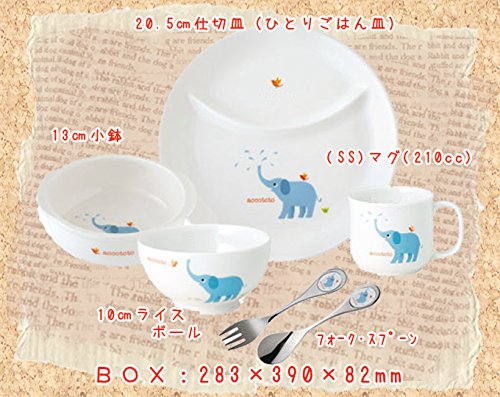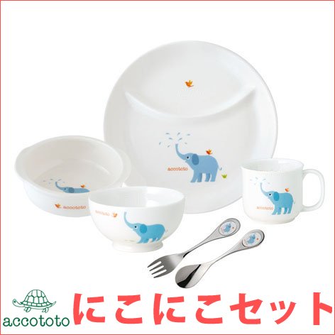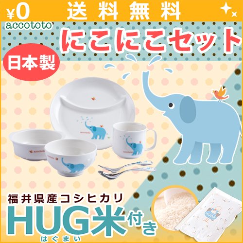 ニッコー 子供食器 出産祝い アッコトト にこにこセット ぞう HUG米 (ランチ皿 ライスボール マグ 小鉢 スプーン フォーク)