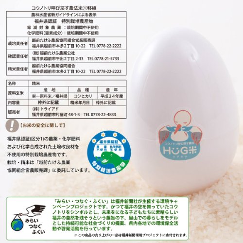 - ハグ米【HUG米】2合(300g)x1袋付き 無農薬・無化学肥料 福井県認証の特別栽培米(コシヒカリ100%)
