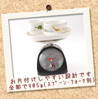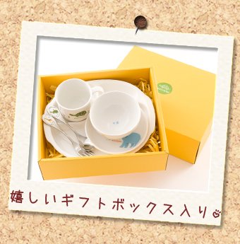 - [セット内容・付属品] セット内容:ランチ皿、ライスボール(きりん)、深皿(ぞう)、マグ(SS)(かめ)、スプーン(かめ)、フォーク(きりん)